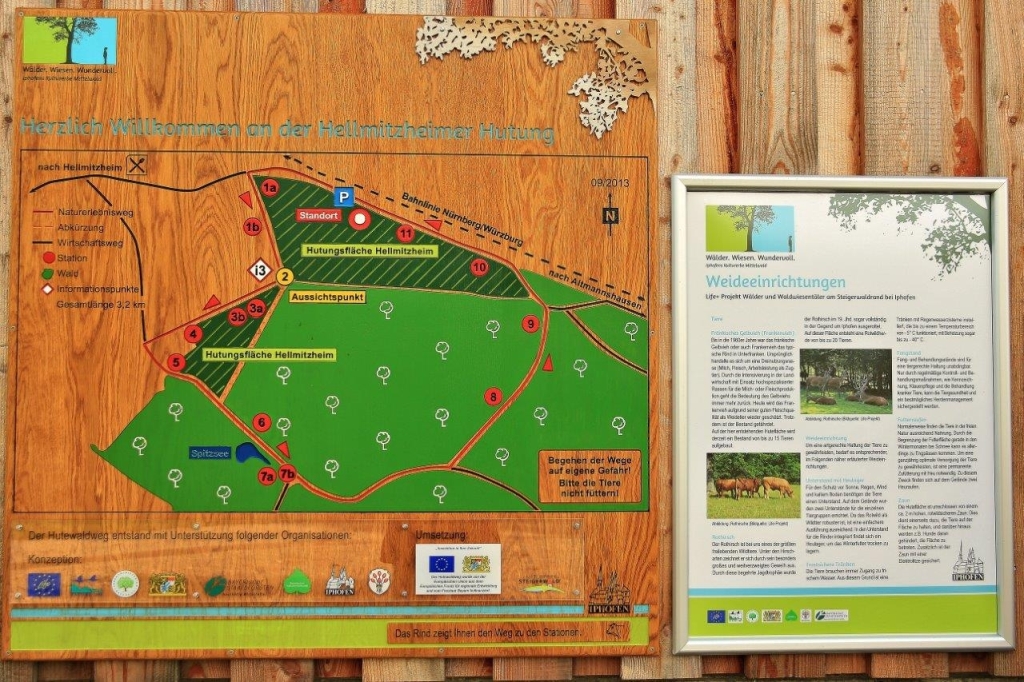 Dem Flatterhaus in Hellmitzheim am nächsten liegt der Hutewaldweg. Besuchen Sie dort eine Fränkische Gelbviehherde und Rothirsche. Die Naturerlebniswege können ganzjährig besucht werden. Mehr Infos unter https://www.iphofen.de/natur-wandern/wandern/naturerlebniswege.html sowie hier auf hellmitzheim.de: https://hellmitzheim.de/der-hutewald/