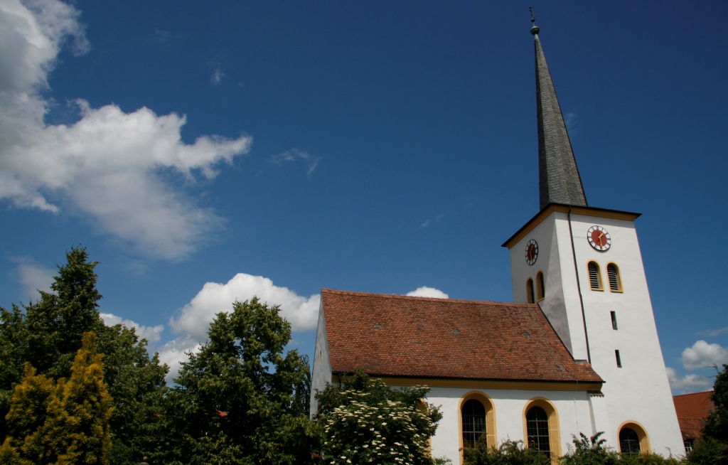 Vor genau zehn Jahren wurden die Außenfassaden der Hellmitzheimer Dorfkirche renoviert. Turm sowie das Kirchenschiff zierten damals ein Baugerüste für die Handwerker. Eine Gelegenheit, Hellmitzheim von oben zu betrachten.