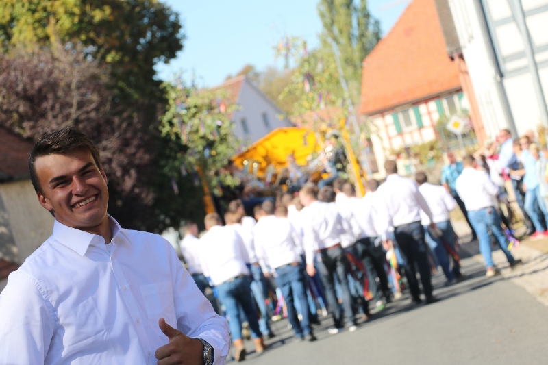 Die Kerwaburschen bestehen derzeit aus 17 Jugendlichen, die zwar nicht mehr alle wohnhaft in Hellmitzheim sind, aber sich zur Kerm alle „Daheim“ einfinden.