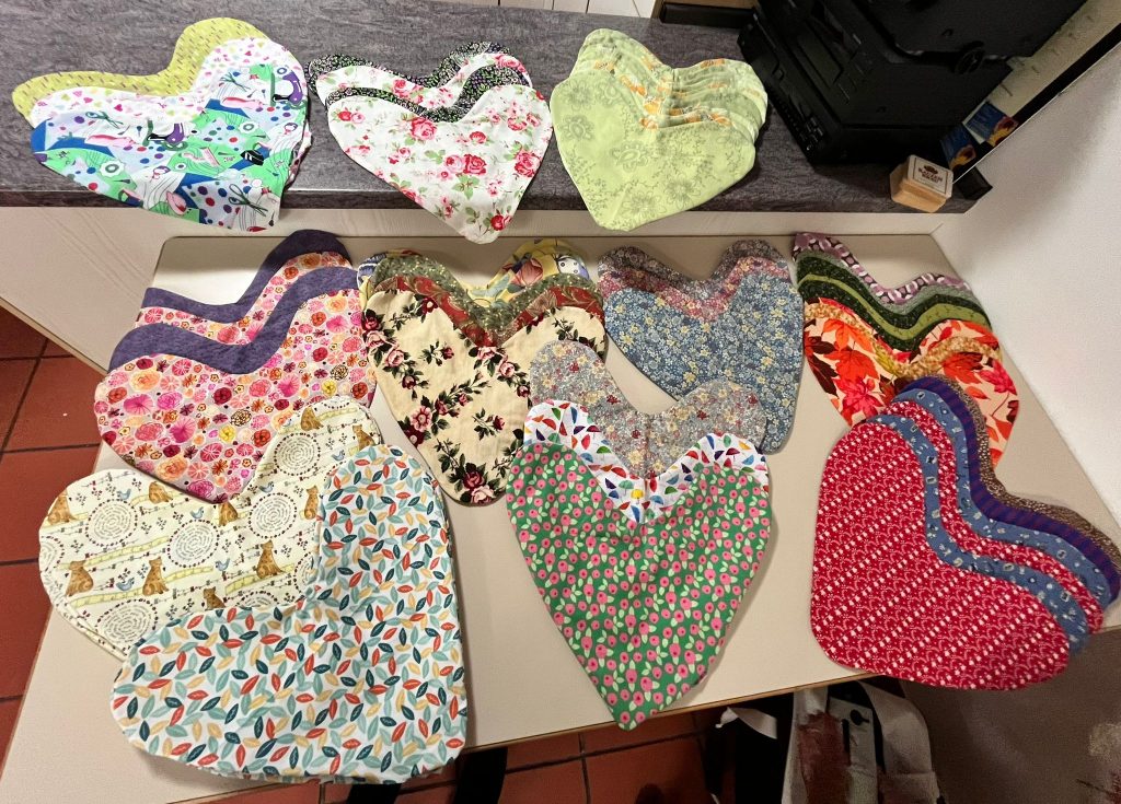 Auch 2024 trifft sich die Iphöfer Patchworkgruppe regelmäßig im Bürgerhaus in Hellmitzheim in der Mönchsondheimer Straße 8 zum Nähen. Anfang Januar nähten wir gemeinsam über 60 Herzkissenbezüge für das fränkische Herzkissenprojekt „Von Herz zu Herz – Frauen helfen Frauen“.