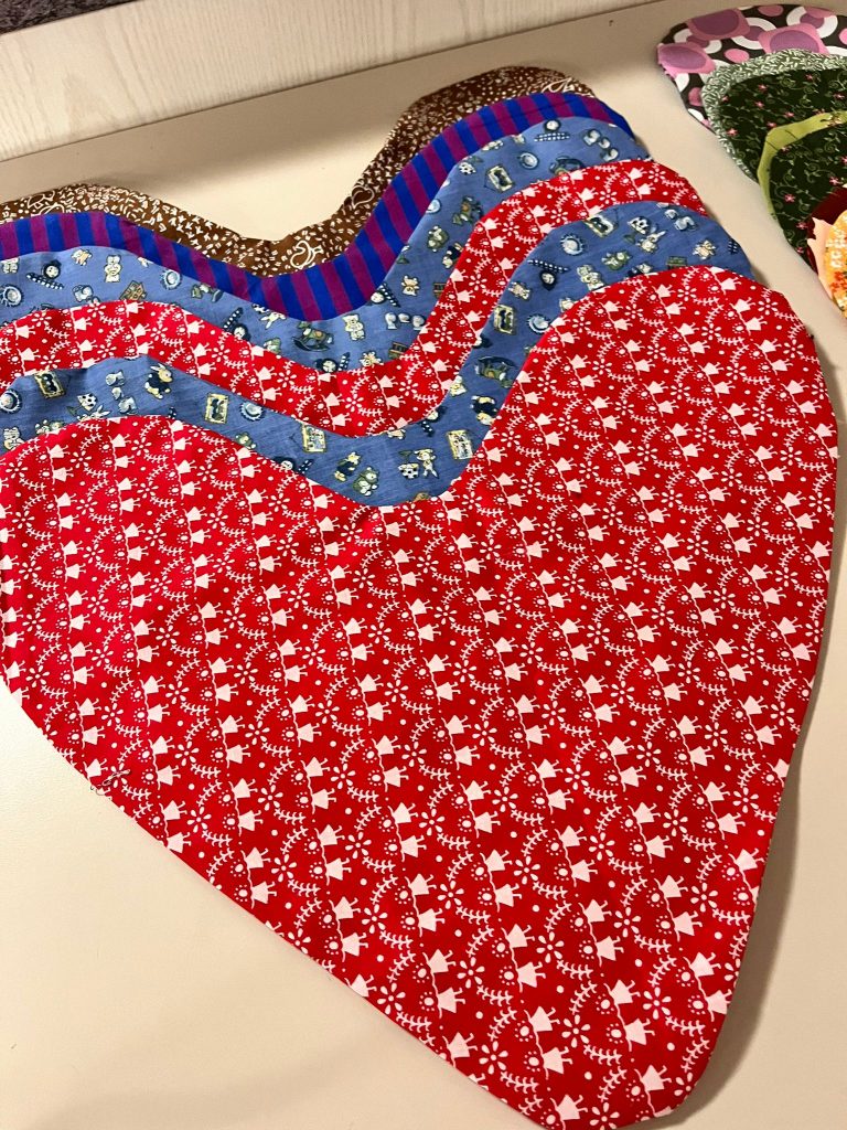 Wir geben unsere Herzkissenbezüge an die Patchworkgruppe in Albertshofen weiter. Dort werden die Kissen gemeinsam gefüllt und an die Klinik Kitzinger Land und die Missionsärztliche Klinik in Würzburg übergeben und an die Patientinnen verschenkt. Sie zaubern sicher den betroffenen Frauen ein Lächeln ins Gesicht!